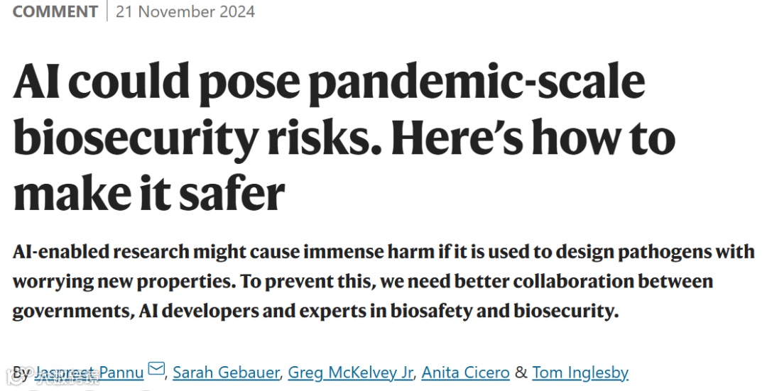 日前,来自约翰·霍普金斯大学和兰德公司的联合研究团队,在权威科学期刊 Nature 上分享了他们关于「AI 可能带来大规模生物风险问题」的见解。