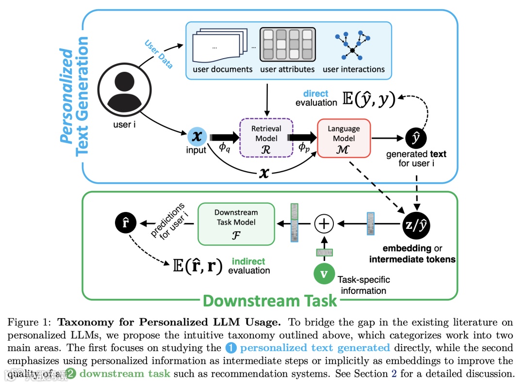 大语言模型(LLM)的个性化最近变得越来越重要,应用范围也越来越广泛,但大多数现有的个性化 LLM 工作要么完全集中在(a)个性化文本生成,要么(b)利用 LLM 进行与个性化相关的下游应用,如推荐系统。