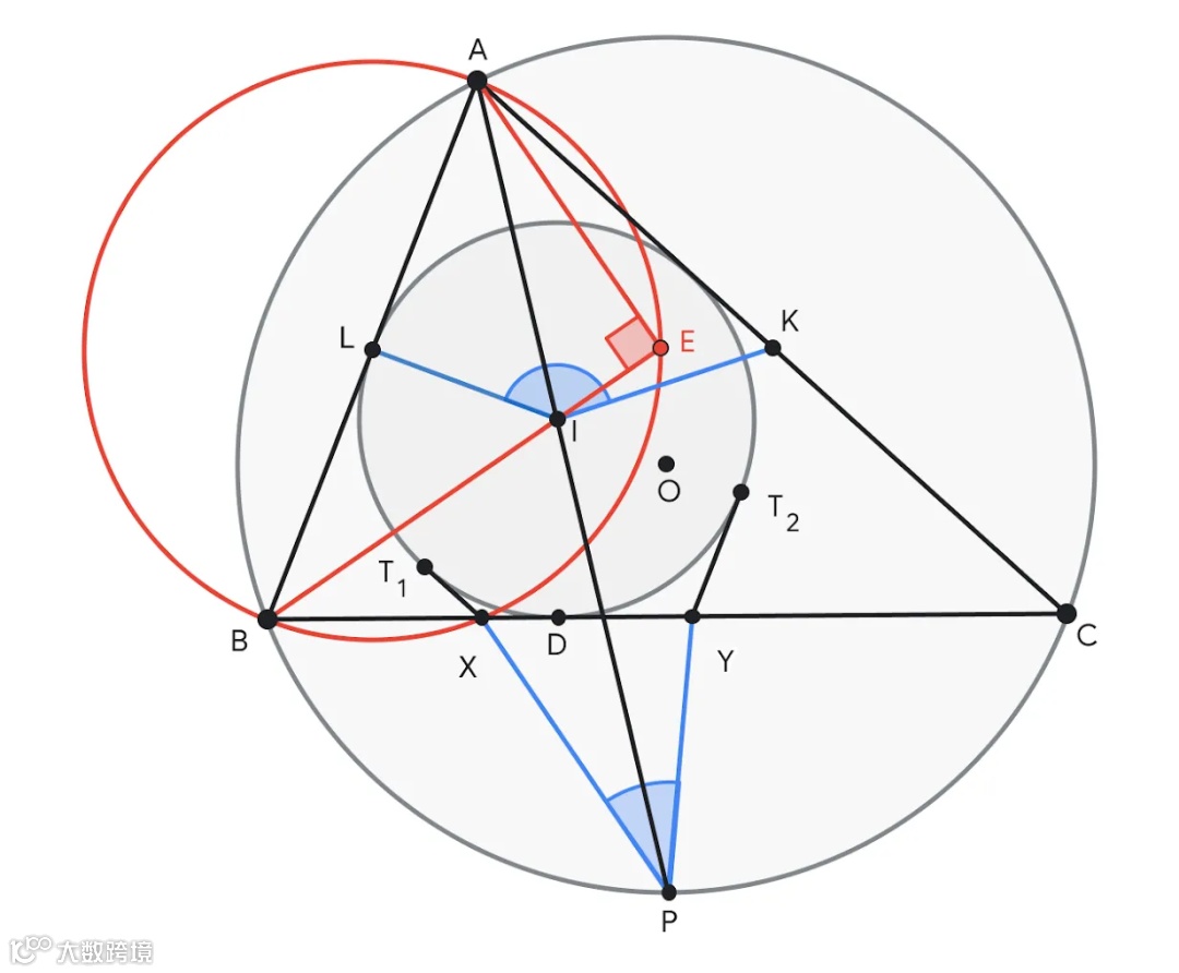 图 | AlphaGeometry 2 提出在直线 BI 上构造点 E,使 ∠AEB = 90°。点 E 有助于给 AB 的中点 L 提供目的,创造了许多对类似的三角形,如 ABE ~ YBI 和 ALE ~ IPC,以证明结论。