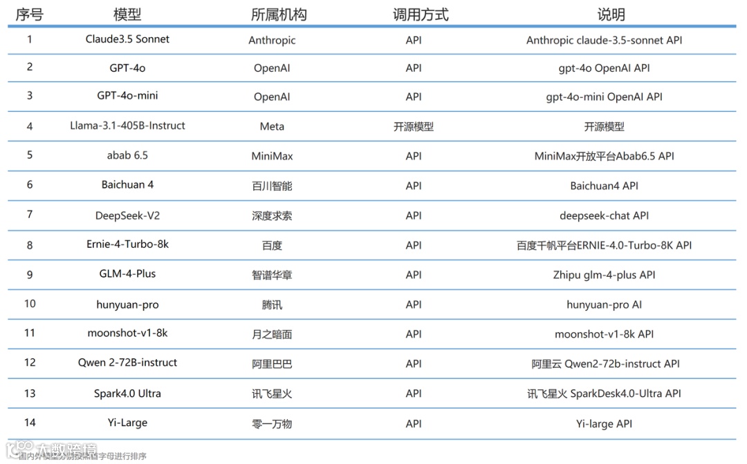 整体来说,GPT-4o在六项评测中进入了前三名,在所有模型中表现最好;排名靠前的Claude3.5 Sonnet和Baichuan 4等模型均在多项评测中进入Top3。
