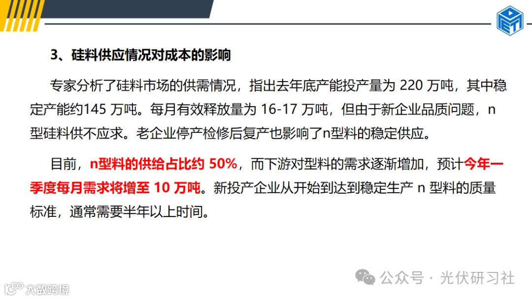 去年新增投立的产能大约 60 万吨,包括沈祥 12万吨和协鑫 20 万吨等。新的亚州硅业尚未投产,但预计将增加 10 万吨产能。现有的 50 多万吨产能若能稳定,将逐步满足 n 型硅料需求。