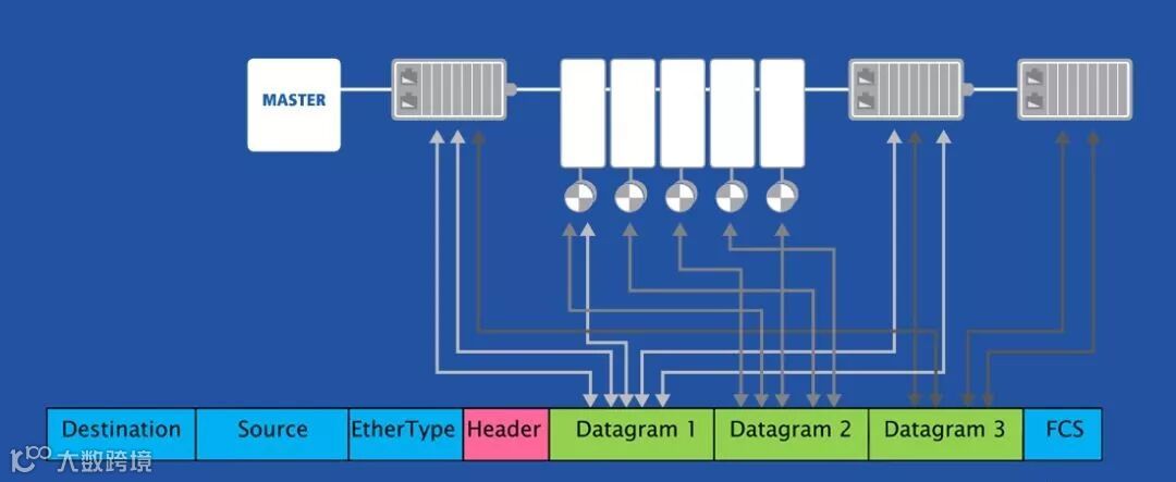 一个单一的报文可以用来传递整个网络需要处理的所有数据 - 如果数据不是太大的话。换句话说,EtherCAT主站无需为网络中的每个从站创建新的软件包,从而节省了时间并消除了对集中式I / O的需求。