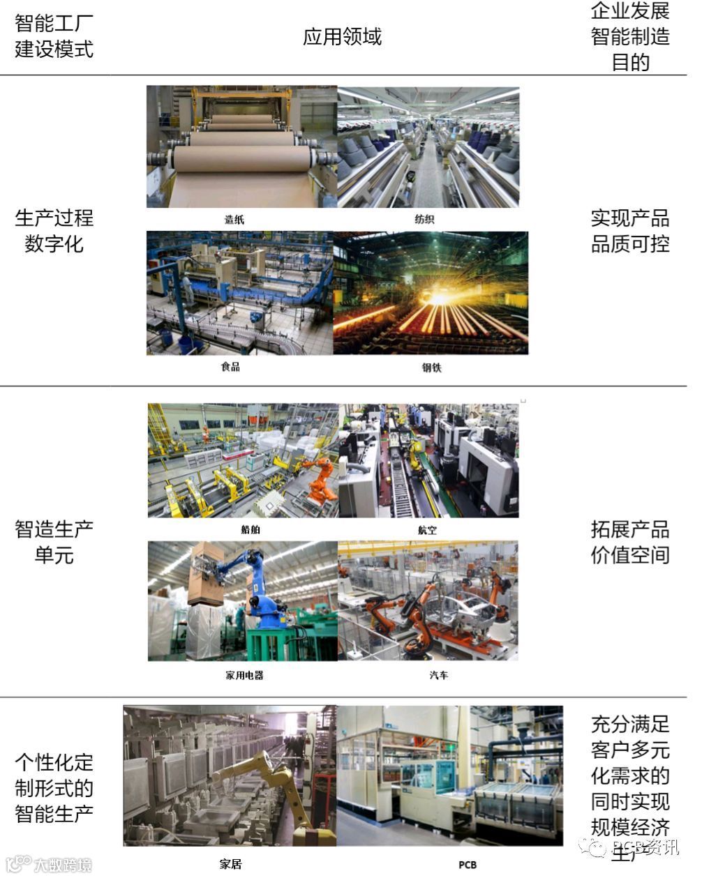 此外,我们梳理了智能工厂的几种模式,认为适合PCB生产的模式应为个性化定制形式的智能生产,其实现难度最高,其最终目标在于充分满足客户多元化需求的同时实现规模经济生产。而智能工厂其他典型场景,1.如钢铁、冶金,内在动力在于产品品质可控,基于品控需求从产品末端控制向全流程控制转变;2.汽车、家电、航空等离散制造领域,智能制造的目标则是拓展产品价值空间,侧重从单台设备自动化和产品智能化入手,基于生产效率和产品效能的提升实现价值增长。