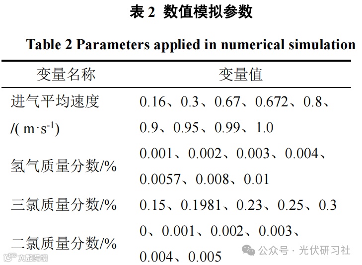 分数为0.0057%,三氯质量分数为0.1981%,二氯质量分数为0,反应温度1200K,进气温度323K,反应压力100×103Pa,进气平均速度vBAR为0.67m·s-1,喷射进气速度vinject为1.72m·s-1。具体参数如表2所示。