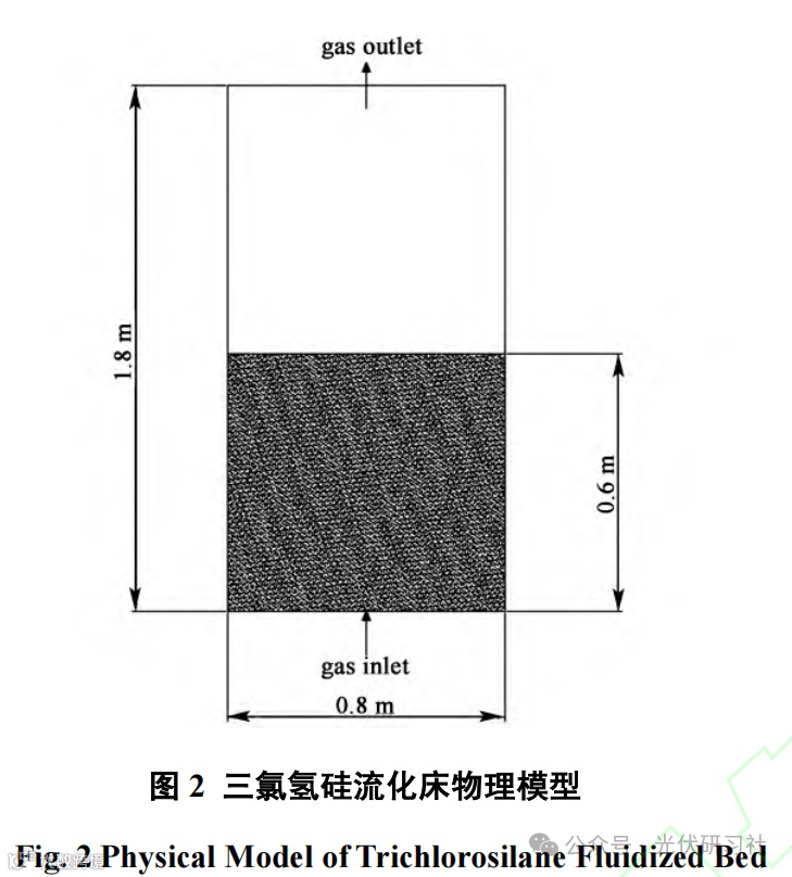 本论文采用Fluent双欧拉模型对三氯氢硅流化床进行模拟研究,湍流模型使用标准k-ε湍流模型,模型的壁面条件均设定为绝热无滑移边界。具体模拟条件如表1所示。