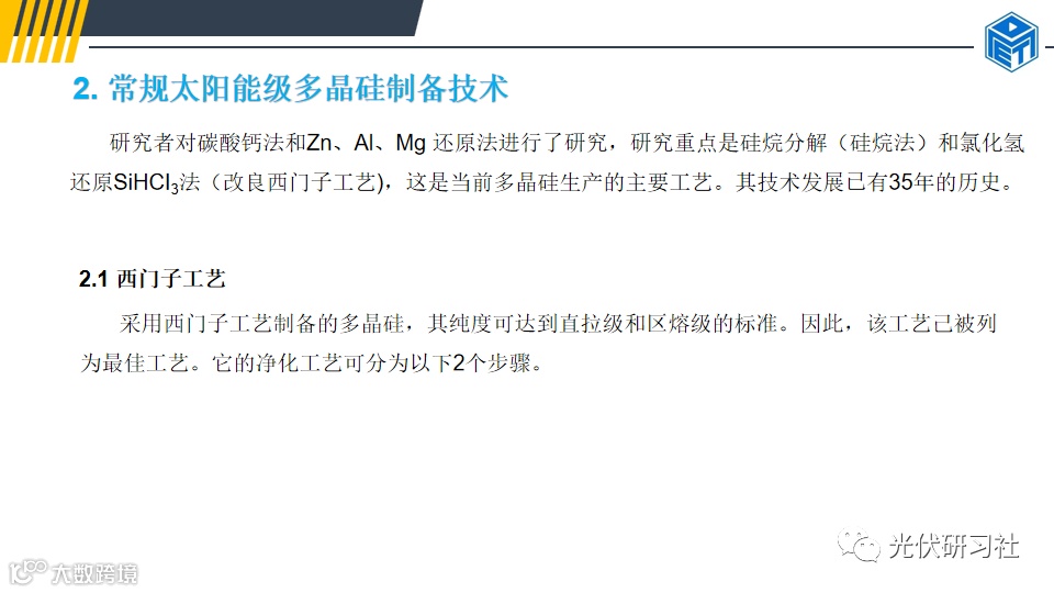 新型高纯度多晶硅制备技术