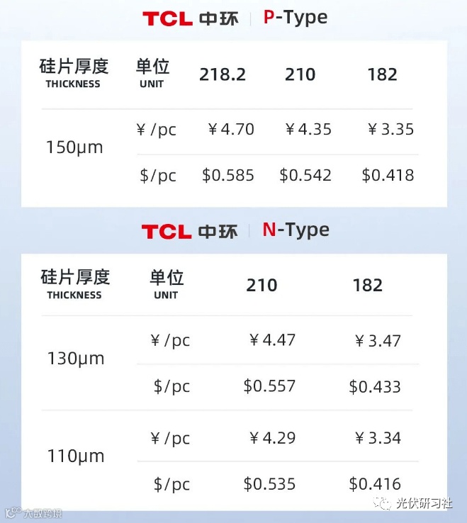 TCL中环9月26日公示本期单晶硅片价格。与最近一次8月21日调价相比: