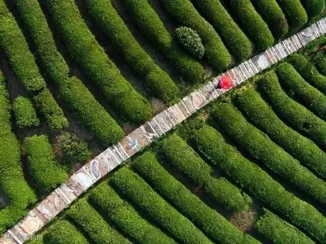 山是茶田的轮廓,氤氲的薄雾为他加上一层滤镜