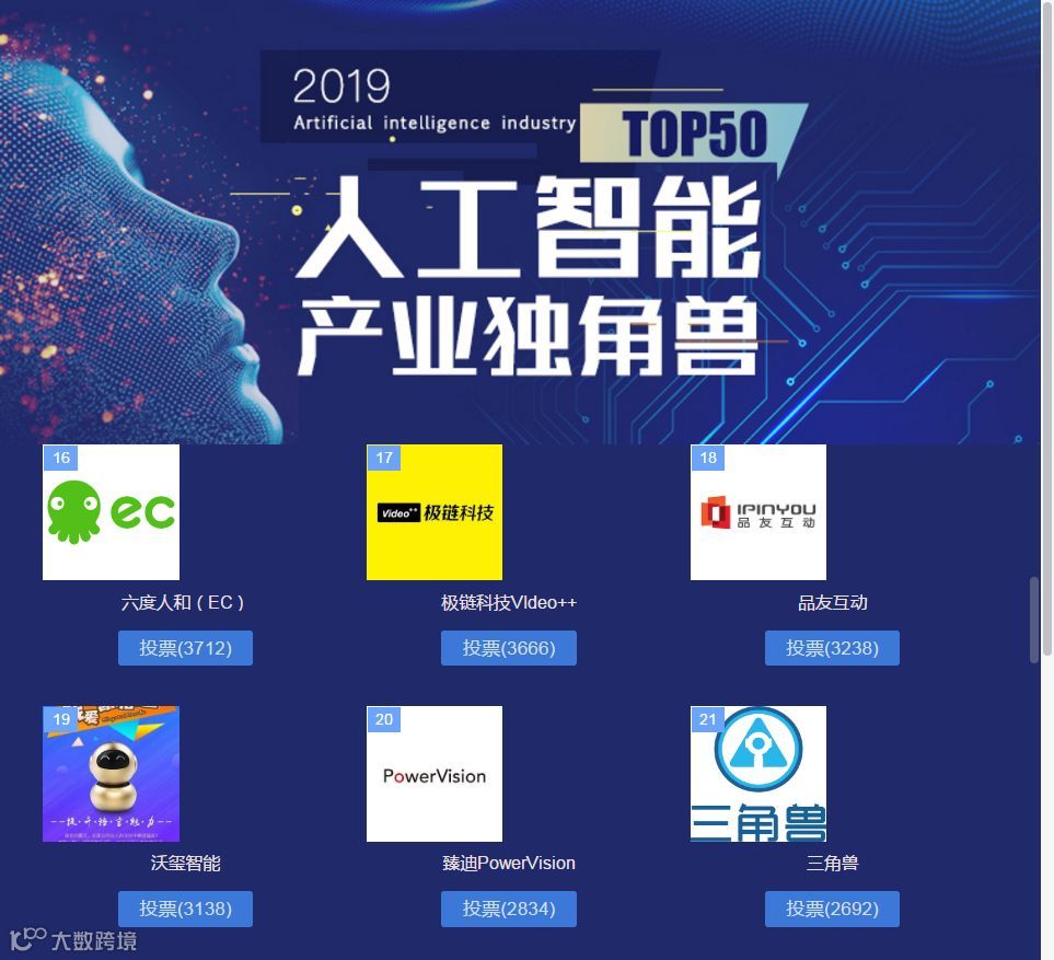 臻迪入围2019人工智能产业独角兽TOP50