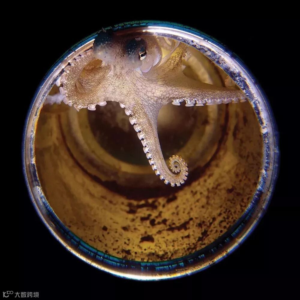 我在潜水的时候发现了这只椰子章鱼,它摆出了完美的姿势,身体变成了深红色,触角对称地包裹起来。最后,我用在佛罗里达潜水时捡到的一个小瓶子为它创造了一个“家”。