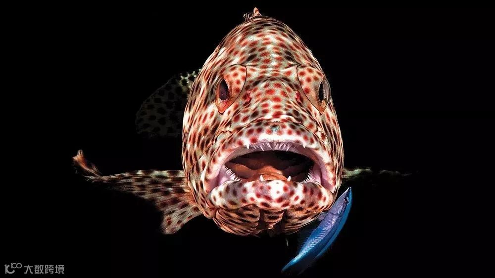这张照片是石斑鱼在张着嘴等待清洁鱼来清理口腔的时候拍下的,我当时从两侧都使用了闪光灯来为这只鱼补光。