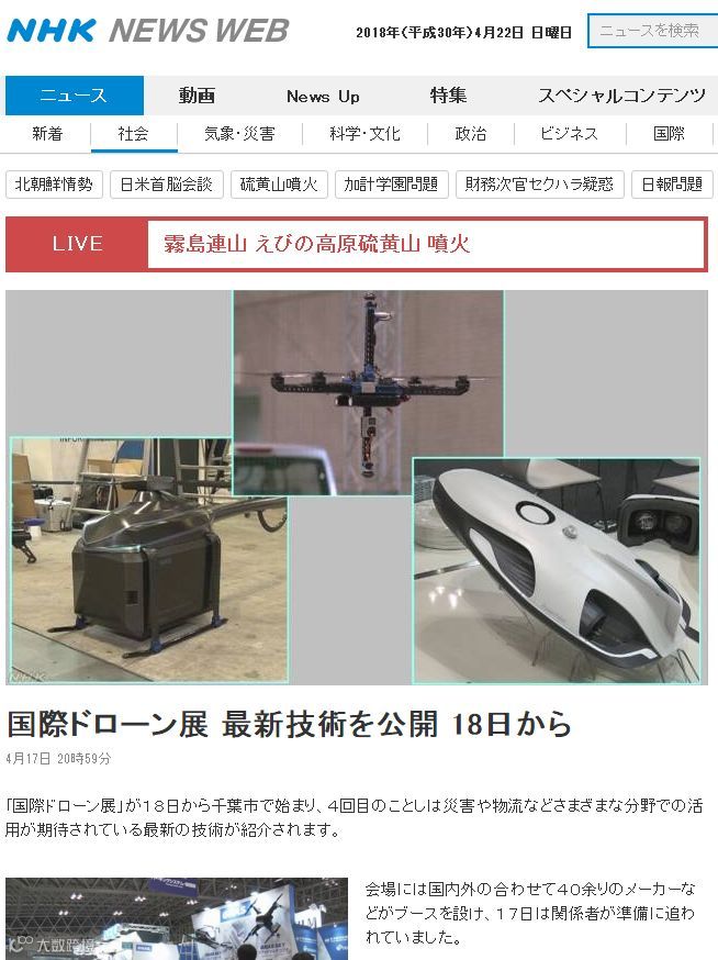 不止综合新闻电视台,许多专门致力于发布无人机产业信息的日本媒体网站们也报道了臻迪(PowerVison)的参展情况。