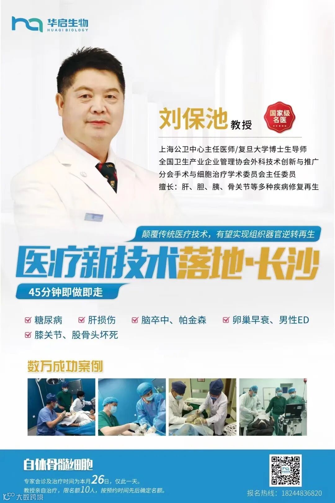 5 月 26 日,国家级名医刘保池教授将携最前沿的自体骨髓细胞治疗技术亲临长沙为病友会诊,限额开放现可预约!