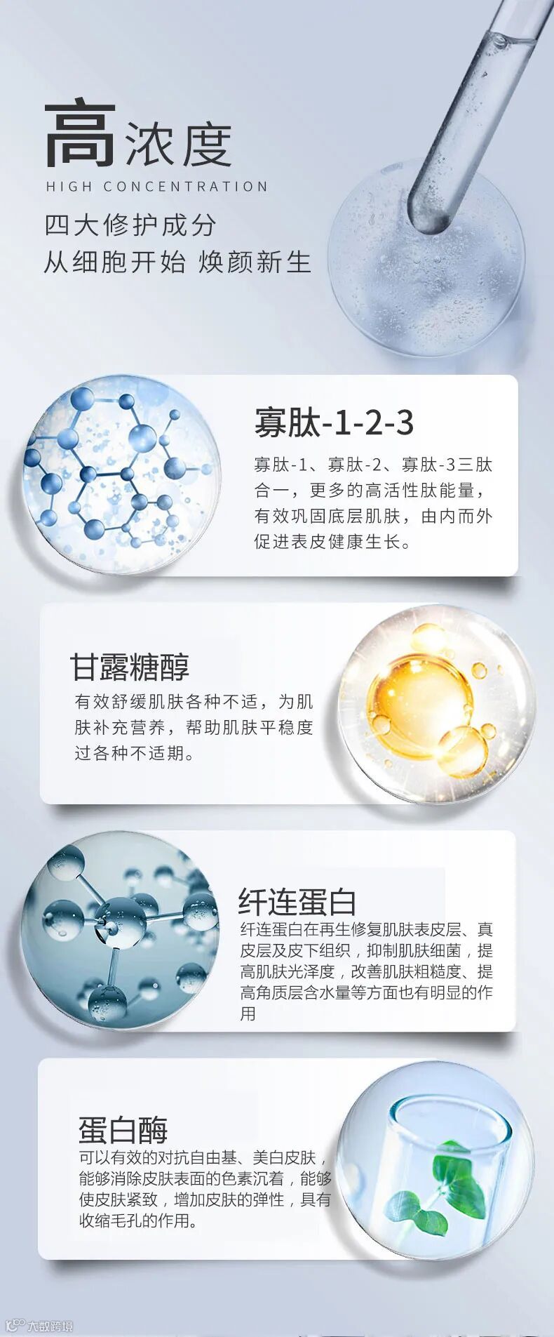 舒缓修护冻干粉组合被称为皮肤软黄金,多种活性多肽,协同作用于皮肤细胞,从细胞层面解决问题性皮肤。全方位修护肌肤,舒缓敏感,修护肌肤损伤,改善肌肤健康状态。