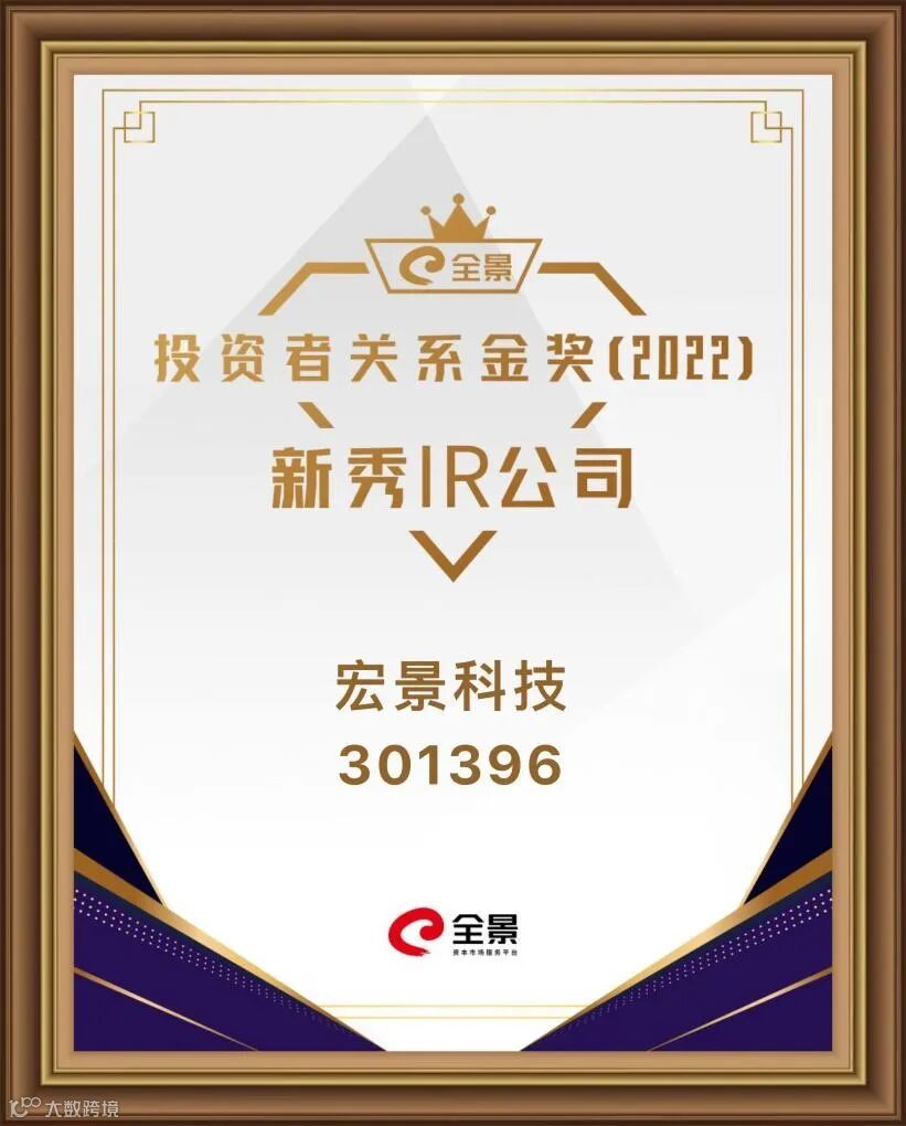 5月23日,由全景网主办、南开大学中国公司治理研究院参与推出的“全景投资者关系金奖”2022年度全国性评选获奖榜单正式揭晓,宏景科技荣获“新秀IR公司”殊荣。