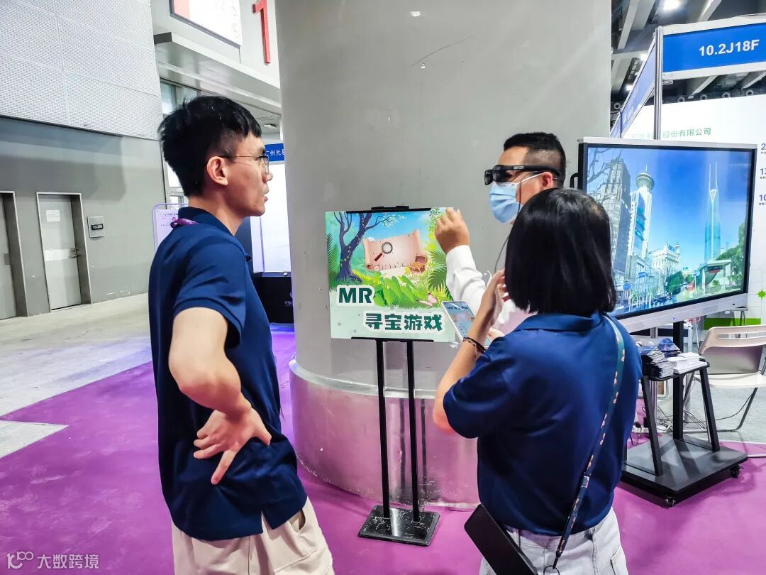 展会上,宏景科技展示了两项最新开发产品。黄田村文旅展厅,这是一款基于实际场景,1:1 3D数字还原历史遗址,兼具真人导游和数字形象;MR寻宝,是一款部署在景区、主题乐园,基于MR眼镜的混合现实产品。宏景科技技术人员现场悉心指导操作,极大提高了沉浸式的体验感。