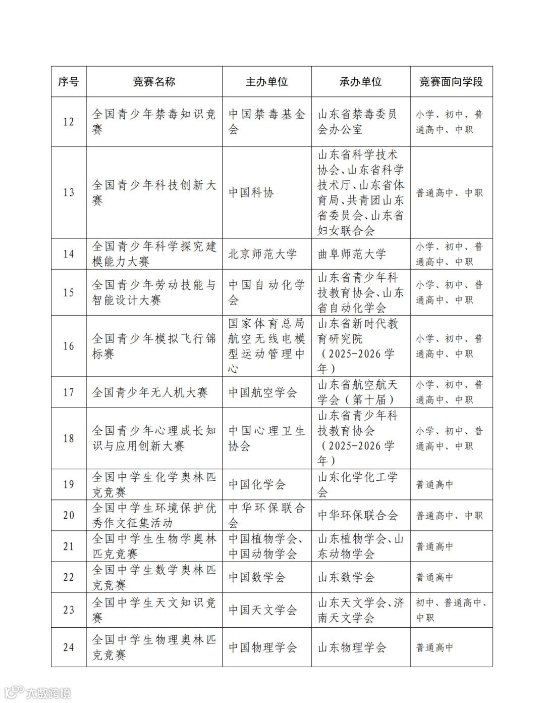 山东省全国性竞赛活动备案名单公示