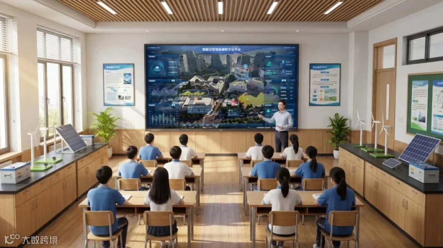 ◎核心技术:校园屋顶安装500kWp光伏板,年发电量约60万度,满足校园20%用电需求。