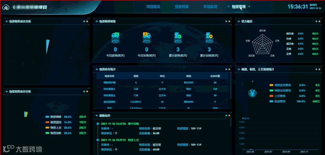 3、物料实际偏差难以客观掌握,物资进出场信息难以存储,出现数据统计错误、纠纷等情况难以追溯。