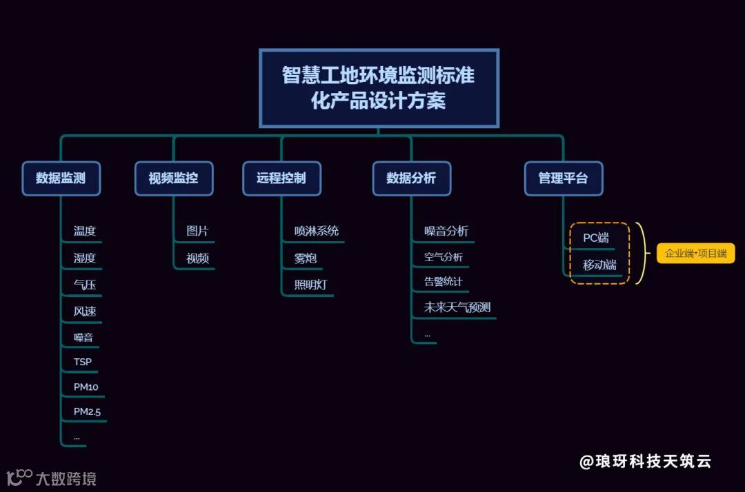 天筑云智慧工地环境监测系统:综合应用物联网、自动控制、大数据和云计算技术,集颗粒物、噪声、大气压、风速、风向、温湿度等在线监测的一体化系统,支持远程实时动态监测,视频记录留档,智能联动降尘设备,提升项目文明施工水平。