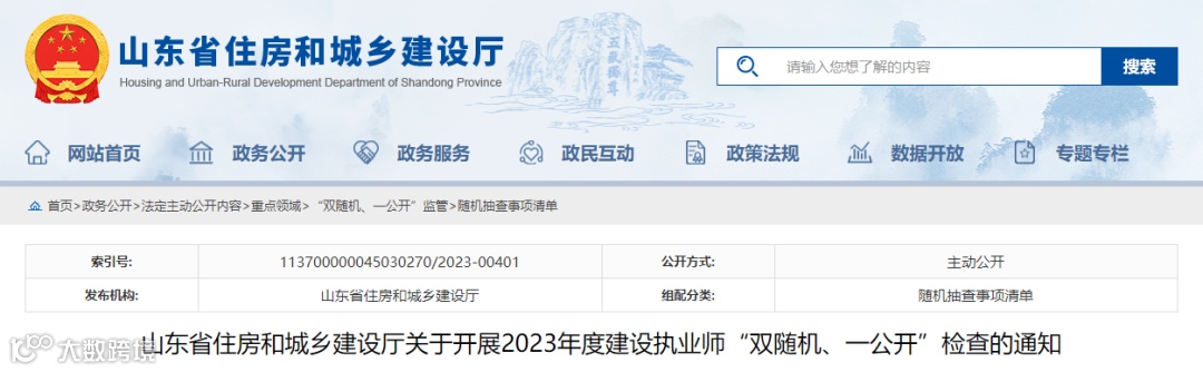 4月17日,山东省住建厅发布《关于开展2023年度建设执业师“双随机、一公开”检查的通知》,明确: