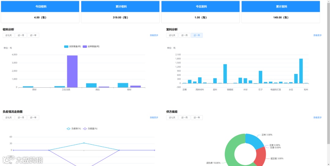 进出场数据统计分析:收发料汇总分析,确保工程采购计划、用料安排、工程进度。