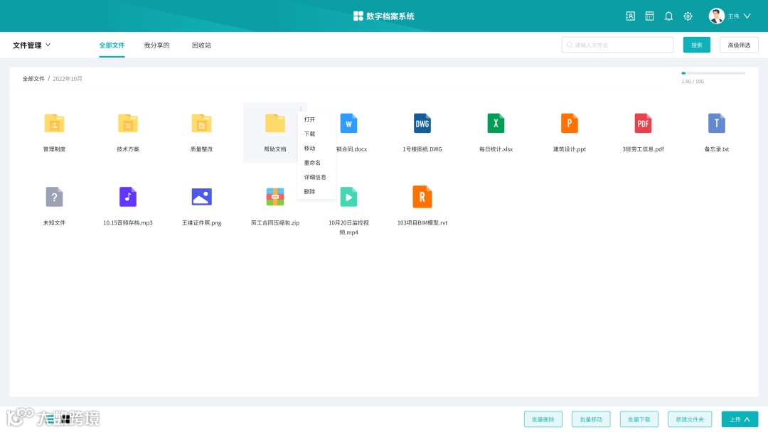 ☑ 通过数字档案系统便于项目负责人对项目资料进行全生命周期管控,提高项目档案管理效率,降低资料泄露风险。
