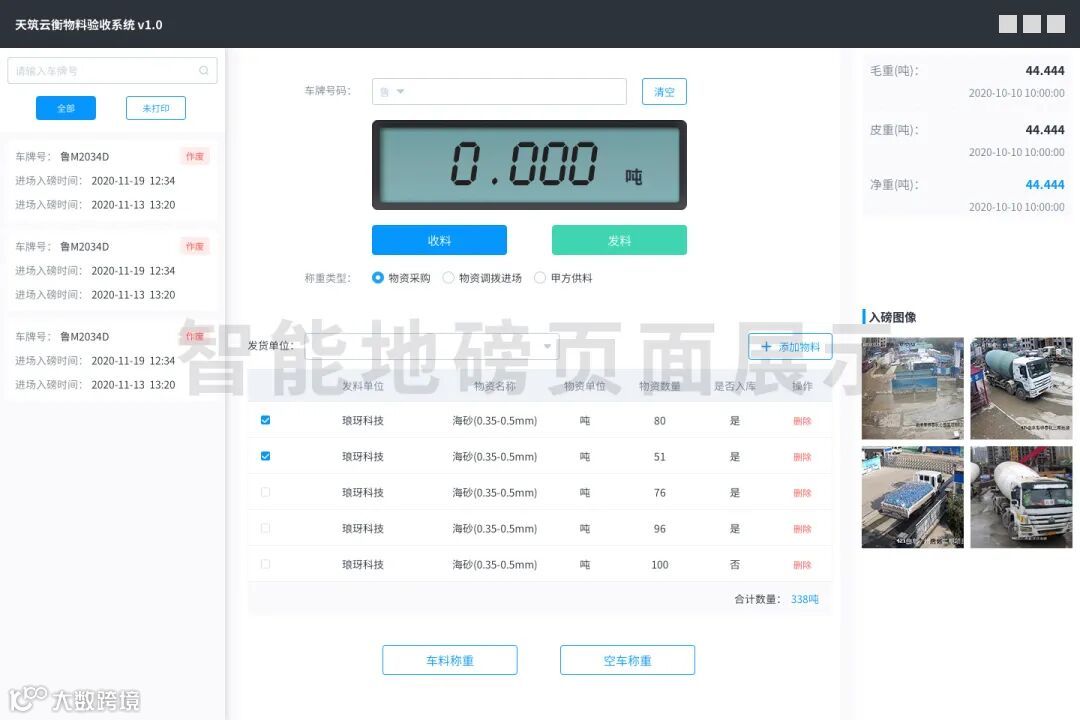 物料进场由智能地磅统计并传达数据,所有材料数据的产生都由系统完成,保证了数据的准确性和客观性,现场照片云端数据储存可追溯。