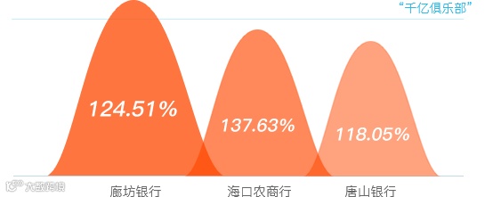银行子榜单中,3家银行资产增长率超100%,分别是:海口农商行(137.63%)、廊坊银行(124.51%)和唐山银行(118.05%),其中廊坊银行连续两年成为资产增速亚军,今年成功迈入“千亿俱乐部”。