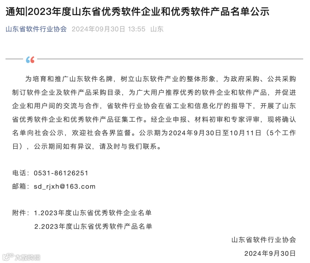 日前,山东省软件行业协会公布了2023年度山东省优秀软件产品名单,山东华方智联科技股份有限公司自主研发软件产品《华方物联网设备综合管理平台V1.0》榜上有名。