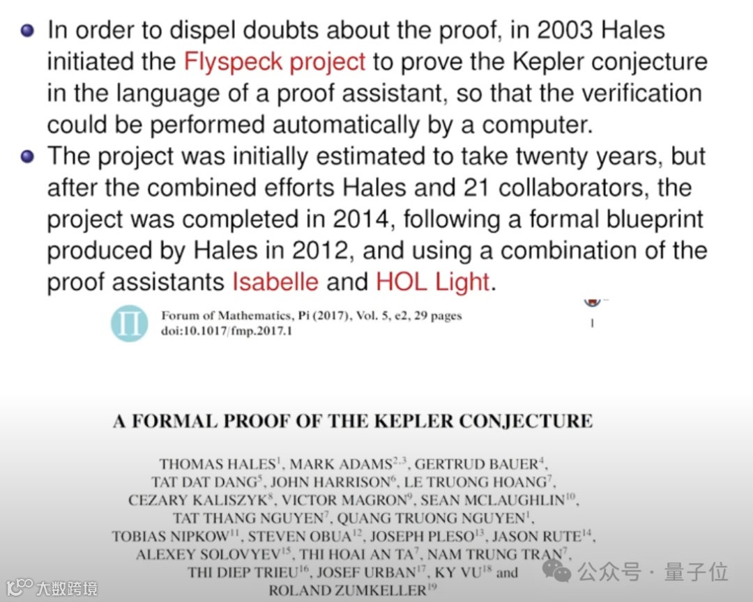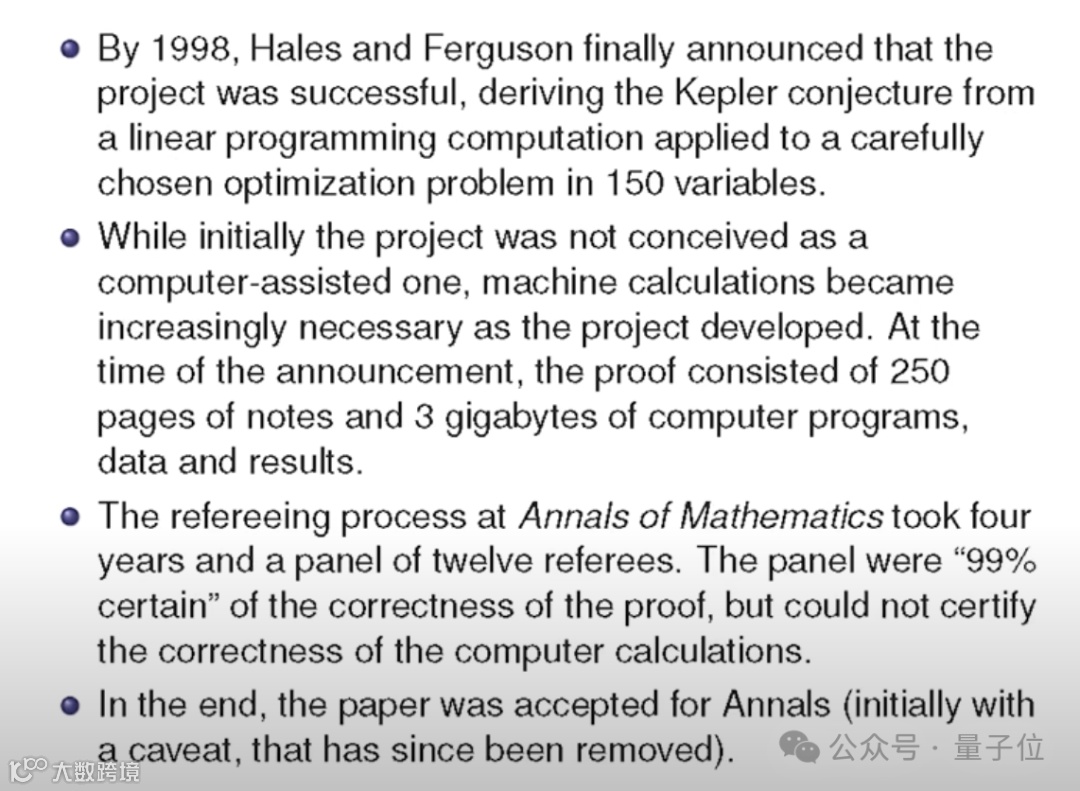 开普勒猜想最终也是借由计算机辅助证明 -
