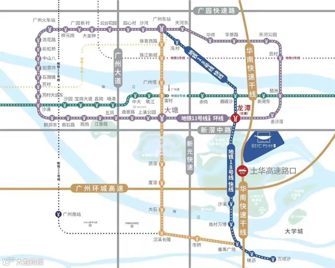 11号线:广州地铁第一条环线,连贯天河、越秀、海珠 、荔湾、白云五大行政区
