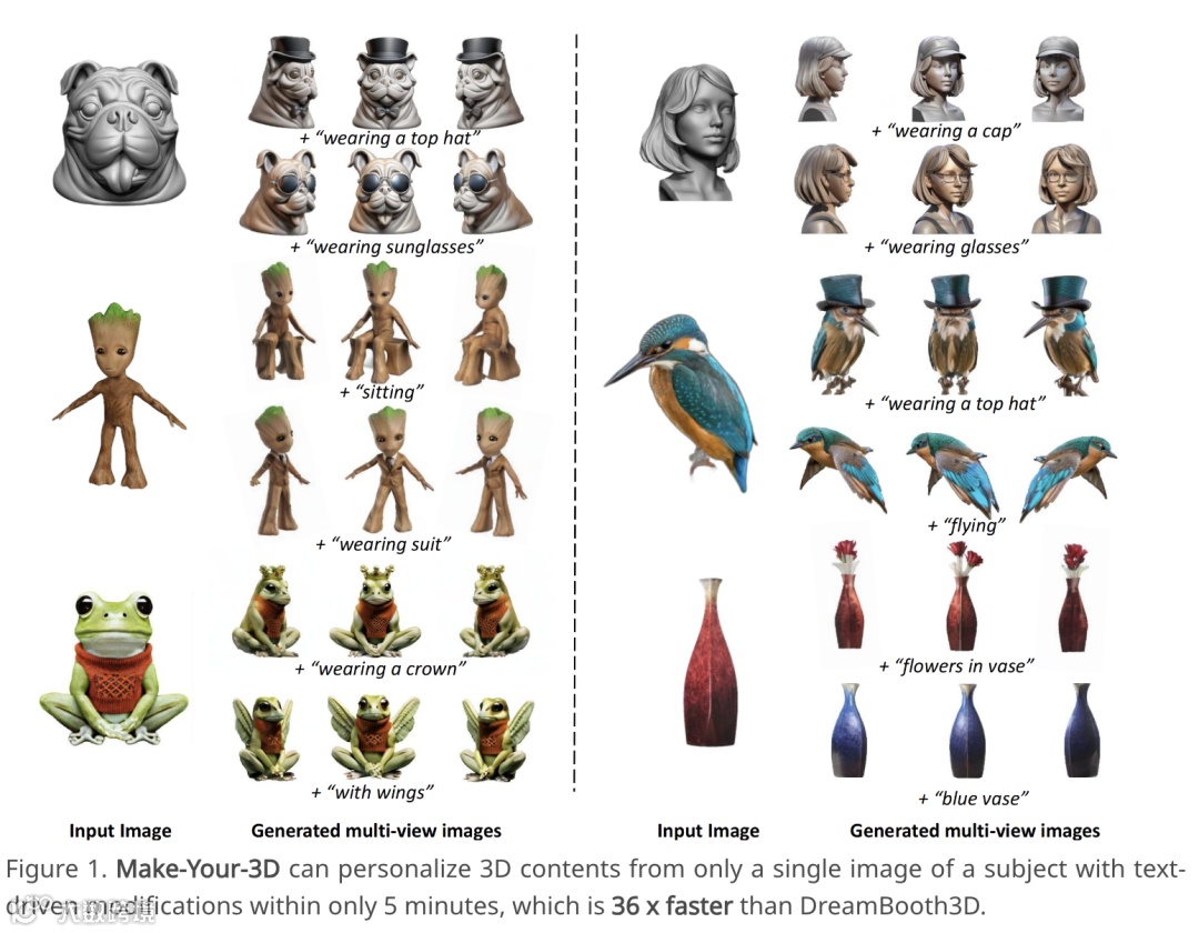 实验证明,这一方法可以生成高质量、一致且针对特定主题的 3D 内容,这些内容由文本驱动修改,在主题图像中是看不到的。
