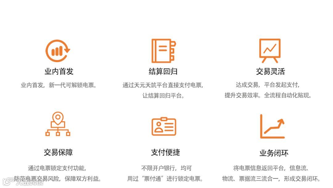 天筑网“票付通”通过线上提供票据服务,规避票据交易风险,缓解资金压力,降低企业费用,线上直接操作促进了电子票据的流通。其次,在交易过程中票据处于锁定状态,极大程度上解决了票据支付的道德风险和操作风险问题。