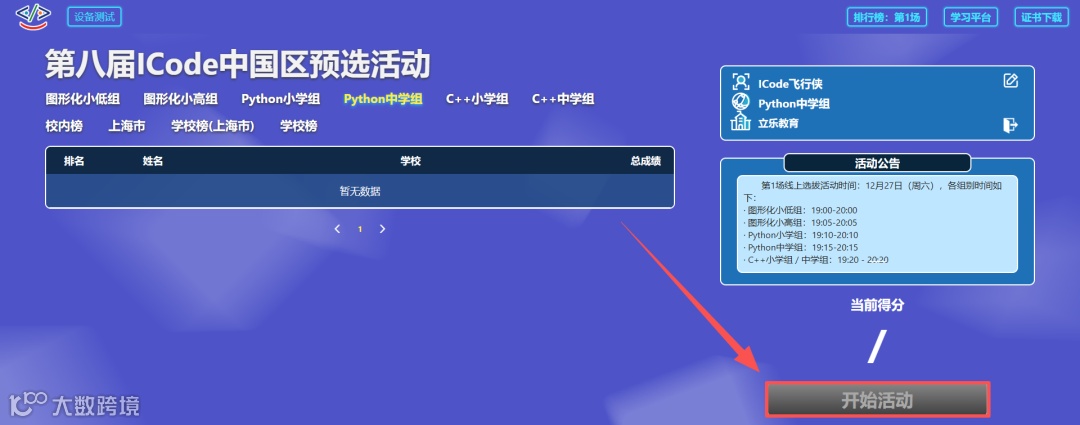 已参加过第一场选手,无需再次报名,在规定时间内直接进入页面,点击“开始活动”即可。