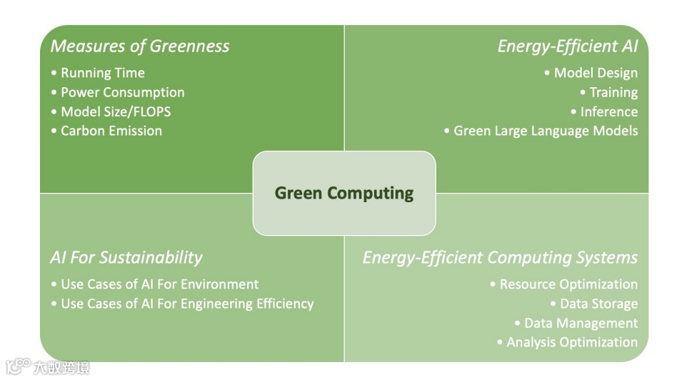 为了应对 AI 在计算资源和环境影响方面的挑战,绿色计算(Green Computing)已成为一个热门研究课题。