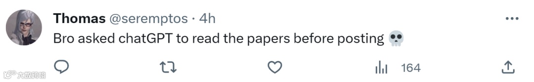 对于这位斯坦福本科生的发现,有人揶揄道,你不会以为人们在发表论文之前会再通读一遍吧。也有人再补了一刀,在发表之前让 ChatGPT 再读一遍。