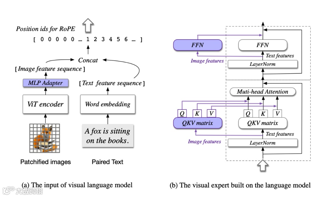 我们在每层添加一个视觉专家模块,以实现深度的视觉 - 语言特征对齐。具体来说,每层视觉专家模块由一个 QKV 矩阵和一个 MLP 组成。