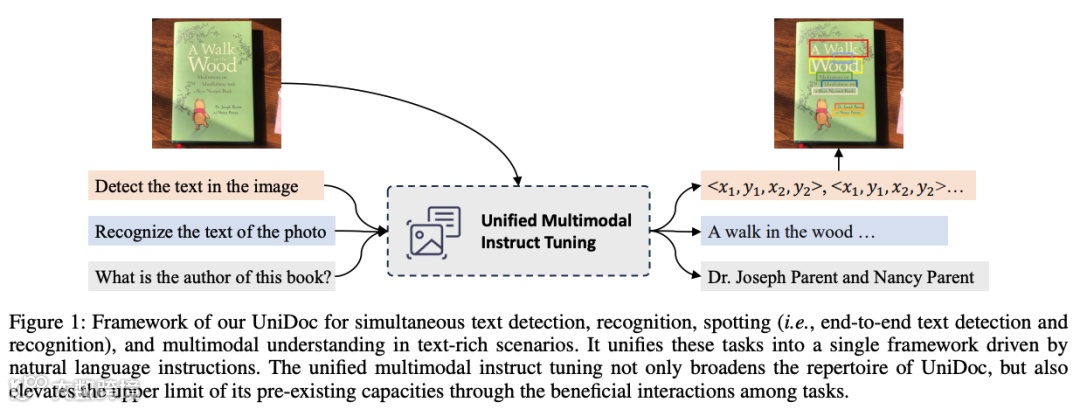 该研究介绍了一种具备文本检测和识别能力的多模态模型——UniDoc。据介绍,UniDoc 可以利用任务间的有益互动来提高每个任务的性能。为了实现 UniDoc,研究人员在所提供的大规模指令跟踪数据集上进行了统一的多模态指令调整。