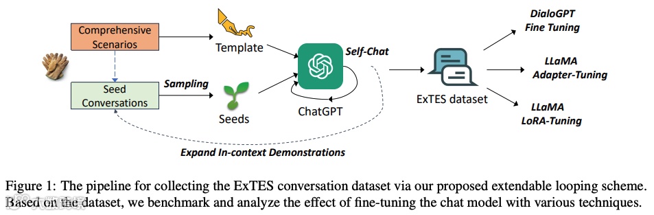 该研究介绍了一种新方法,该方法综合了人类的洞察力和大型语言模型(LLM)的计算能力,进而策划了一个广泛的情感支持对话数据集——ExTES。该方法以精心设计的、跨越不同场景的对话集作为生成种子。通过利用 ChatGPT 的上下文学习潜力,我们递归生成了一个 ExTensible 情感支持对话数据集,命名为 ExTES。