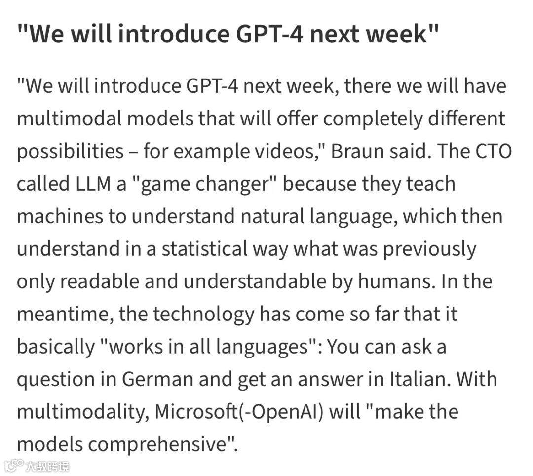 GPT-4将于下周发布,微软德国CTO:将提供完全不同的可能性