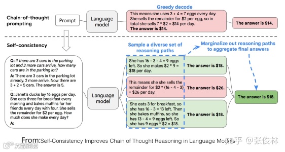 以上是目前利用Prompt激发LLM模型推理能力的三种主流做法,而关于LLM的推理能力,目前还观察到一个有趣且费解的现象:除了文本外,如果能够加入程序代码一起参与模型预训练,则能大幅提升LLM模型的推理能力。这个结论从不少论文的实验部分都可以得出(可以参考:AUTOMATIC CHAIN OF THOUGHT PROMPTING IN LARGE LANGUAGE MODELS/Challenging BIG-Bench tasks and whether chain-of-thought can solve them等论文的实验部分)。