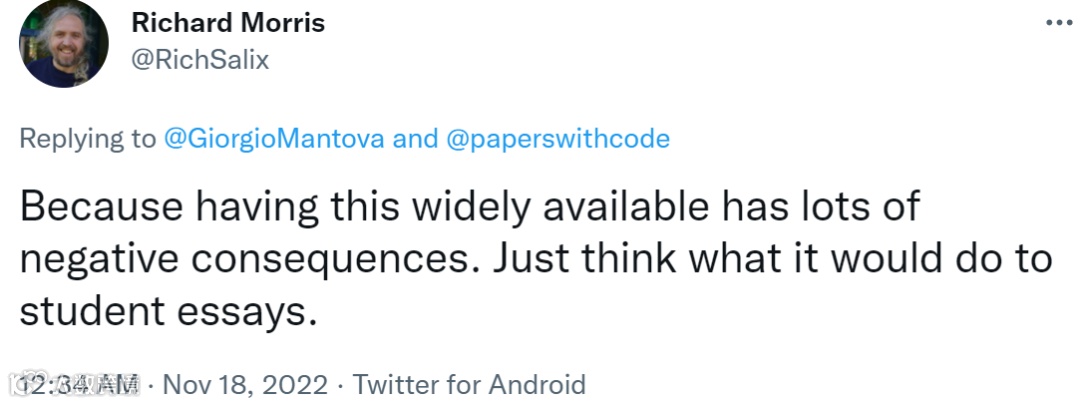 不过与极力推崇该研究的人相比,有网友提出一些反对意见,与其带来的好处相比,Galactica 会带来更多负面后果,想想这对学生写论文会有什么影响。
