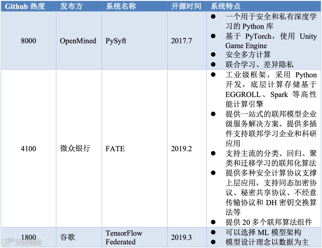 图|开源的联邦学习框架(来源:《2022 联邦学全球研究与应用趋势解读》)