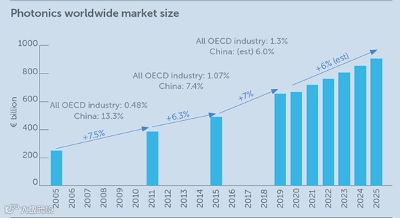 ▲全球光子产业市场规模 (€/billion)
