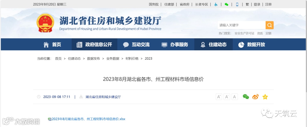 最新信息价数据已导入湖北数据联盟,可于天筑云数据应用平