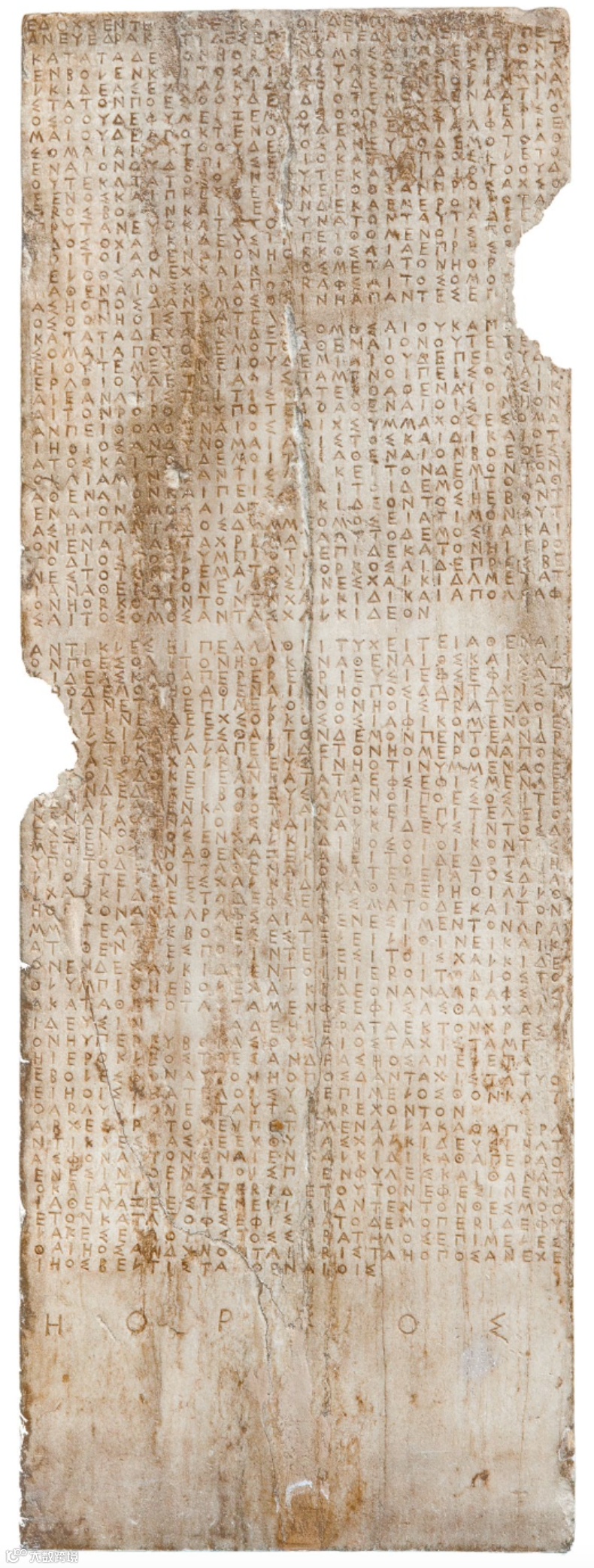 图|碑文记录了迦尔西斯城对雅典的效忠誓言。(来源:卫城博物馆)