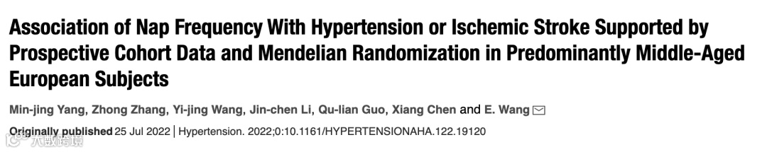 孟德尔随机化结果显示,如果午睡频率发生变化,比如从不午睡到偶尔午睡,或从有时午睡到经常午睡,罹患高血压的风险就会增加 40%,较高的午睡频率与高血压风险的遗传倾向有关。