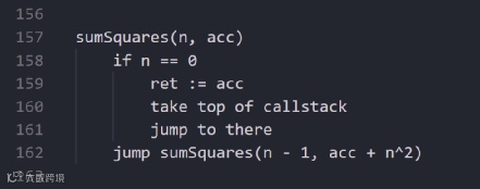 如果在函数调用后不进行任何操作,就可以直接跳转。比如从累加器“accumulator” 中添加参数“acc”来实现累加。其具体实现如下: