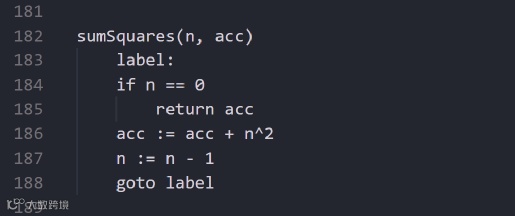 事实上,这是一种while循环,可以理解为:如果n是零那么返回,否则运行某些代码后跳转到开头,其功能与下面的while循环等价: